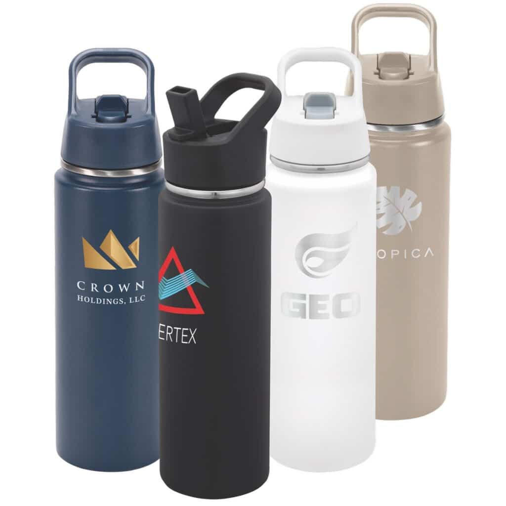 The dual-walled stainless-steel construction, sweat-free powder-coated finish and lead-free vacuum seal make this bottle durable and reliable, while the twist-off lid with built-in flip straw and carry handles adds to everyday convenience. Two detachable internal straws and a one-year limited warranty are also included. “With the laser engraving or TruColor imprint, any brand really pops,” McCalla says.