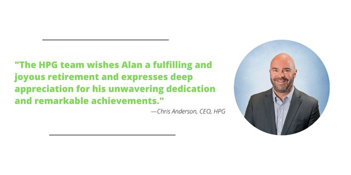 “The HPG team wishes Alan a fulfilling and joyous retirement and expresses deep appreciation for his unwavering dedication and remarkable achievements during his tenure,” says Chris Anderson, CEO of HPG. “Evans and HPG remain committed to upholding the legacy Alan leaves behind, as it continues to deliver high-quality products and frictionless services to its valued customers. That said, Alan remains a significant HPG shareholder, and a trusted advisor to the company, and to myself.”